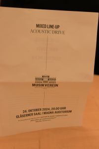 Harri Stojka, geboren als Harald Wakar Stojka 1957 in Wien, ist ein Musiker von Weltruf. An und mit seinem Instrument, der Gitarre, ist Stojka Spezialist und Universalist in einem. Sein Stil Jazz, Blues, Rock, World, Swing..Der Schwerpunkt von Harri Stojkas Live-Arbeit im Jahr 2024 liegt dabei ganz klar in der Formation ACOUSTIC DRIVE gemeinsam mit seinen kongenialen Partnern Herbert Berger (Sax), Peter Strutzenberger (Bass) und Sigi Meier (Schlagzeug) den er heute im Wiener Musikverein präsentierte. Anschließend an das Konzert fand noch ein interessantes Gespräch mit Harri Stojka und der Ö1 Moderatorin Ulla Pilz statt. Ein gelungener Abend.