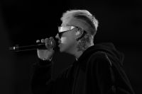 Rapper Lazza opens the event called "Tra Palco e città" at the Suzuki Stage, during the 74th edition of the Sanremo Song Festival. Among the songs sung also "Cenere", with which he ranked second last year. Rap music now represents a form of art, redemption and economic fulfillment for many young musicians in Europe and around the world. Photos are available for editorial use.