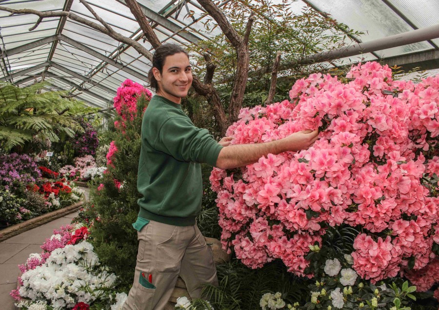 Züchter zogen daraus seither an die 2.000 Sorten, von denen allerdings die meisten nicht überdauert haben. In Sammlungen erfasst sind in Deutschland aktuell rund 700 Sorten. Mit rund 25 Millionen verkauften Topfpflanzen gehören die Azaleen zu den großen Lieblingen der Deutschen. Zu sehen ist die Blütenschau bis in den Mai. Dann ziehen die Azaleen ins Freiland, wo sie an einem geschützten, halbschattigen Ort Kraft für die nächste Blühsaison tanken. Fundierten Einblick gibt Gärtnermeister Christian Mikoteit bei zwei Führungen an diesem Samstag, 25. März, um 9.30 und 11.30 Uhr. Noch gibt es Restplätze für Schnellentschlossene. Die Teilnahme ist kostenlos; nur der normale Wilhelma-Eintritt fällt an. Allerdings ist eine Anmeldung bis Freitag, 12 Uhr, notwendig unter Tel. 0711 / 54 02-0.