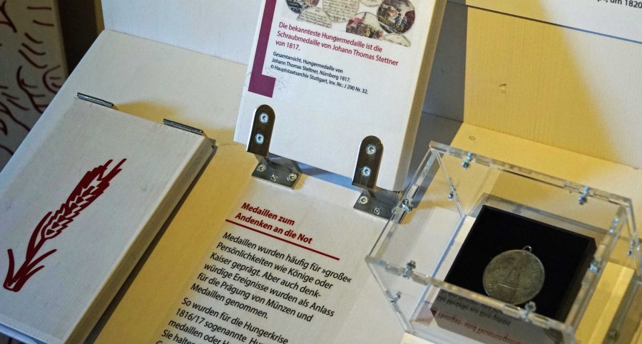 Der Vulkan Tembora liegt 12.000 Kilometer entfernt in Indonesien. Sein gewaltiger Ausbruch im Jahr 1816 führte in Deutschland zur Hungersnot. Zum Teil mussten die Bürger in Deutschland das Mehl mit Sägespänen, Kartoffelschalen oder Moos strecken, um wenigstens einmal am Tag Brot esse zu können. Die Dauerausstellung befasst sich mit der Krise und zeigt, wie König Wilhelm I. und Zarentochter Katharina Pawlowna schließlich Linderung brachten und die Landwirtschaft förderten.