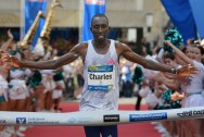 Martin Cheruiyot, Cornelius Kibiwott Chepkock und Justus Kiprotich, das kenianische Quartett, folgte ihm in harmonischem Gleichklang. Nachdem Pfeiffer seinen Dienst nach der Hälfte der Strecke (64:25 Minuten) beendete, waren die Läufer auf sich allein gestellt, während die Temperaturen um die 20 Grad lagen und Windstille herrschte. Charles Muneria, ein wahrhaft unerschrockener Athlet, konnte bereits den Höhepunkt seiner Karriere förmlich riechen. Von den Zuschauern am Straßenrand angefeuert, die sich immer zahlreicher versammelten, je näher das Ziel in Münster-City rückte, hielt er seinen beeindruckenden Laufrhythmus aufrecht. Schließlich erreichte er den Zielbereich auf dem Prinzipalmarkt, wo alljährlich der rote Teppich ausgerollt wird, und finishte inmitten des jubelnden Publikums in beeindruckenden 2:09:06 Stunden.